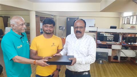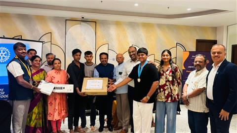 Rotary Bangalore Spandana awarded a ₹50,000 scholarship to K. Mahal. . .